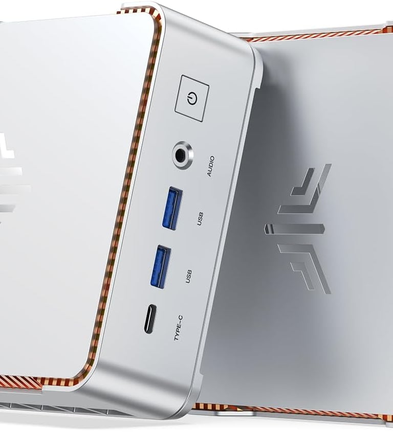 This Mini PC features a handy front panel with an Audio Jack, a USB port, and a Type-C port for modern devices and fast data transfer. Compact and practical, it's perfect for daily use at home or in the office.